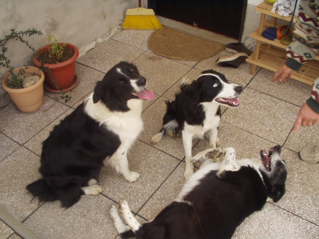 Když jsme si pro Abby před rokem a půl jeli, nevěděli jsme, co od plemene border kolie očekávat. Po pár minutách s Abby nám bylo jasné, že se nudit nebudeme. Dobře si vzpomínám, že jsem se paní chovatelky ptala, "a co když bude chtít čůrat, řekne si?" a ona na to "řekne, vždy když něco chce, tak zakňučí."Nasedli jsme do auta a jeli směr domů, co asi dělala Abby?- kňučela, asi chtěla zpátky domů. Dnes jsme už smíření s tím, že Abby je píšťalka upískaná, ona si jde třeba jen pro pohlazení a přece u toho píská . Prostě, když něco chce, tak si zakňučí. Sice u toho vrtí ocáskem, ale pořád něco povídá. A když ji řekneme :"Abby a řekni nám ještě něco", tak kňučí ještě víc nahlas....